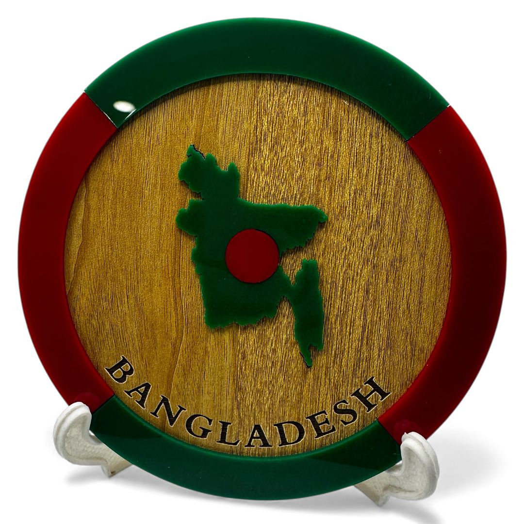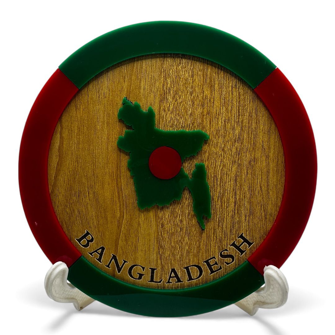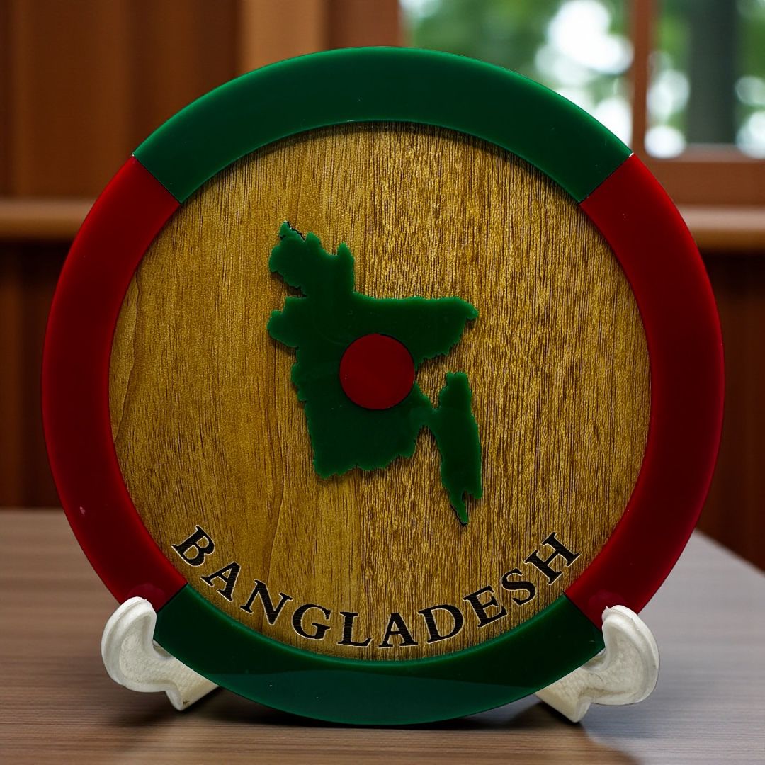 Display your national heritage with this stylish Bangladesh Map Round Monogram, perfect for any table, desk, or workspace. The 6-inch design, paired with a sturdy stand, makes it an ideal decor piece for homes, offices, and gift collections. Durable, vibrant, and beautifully crafted, it adds a meaningful patriotic touch to any setting.