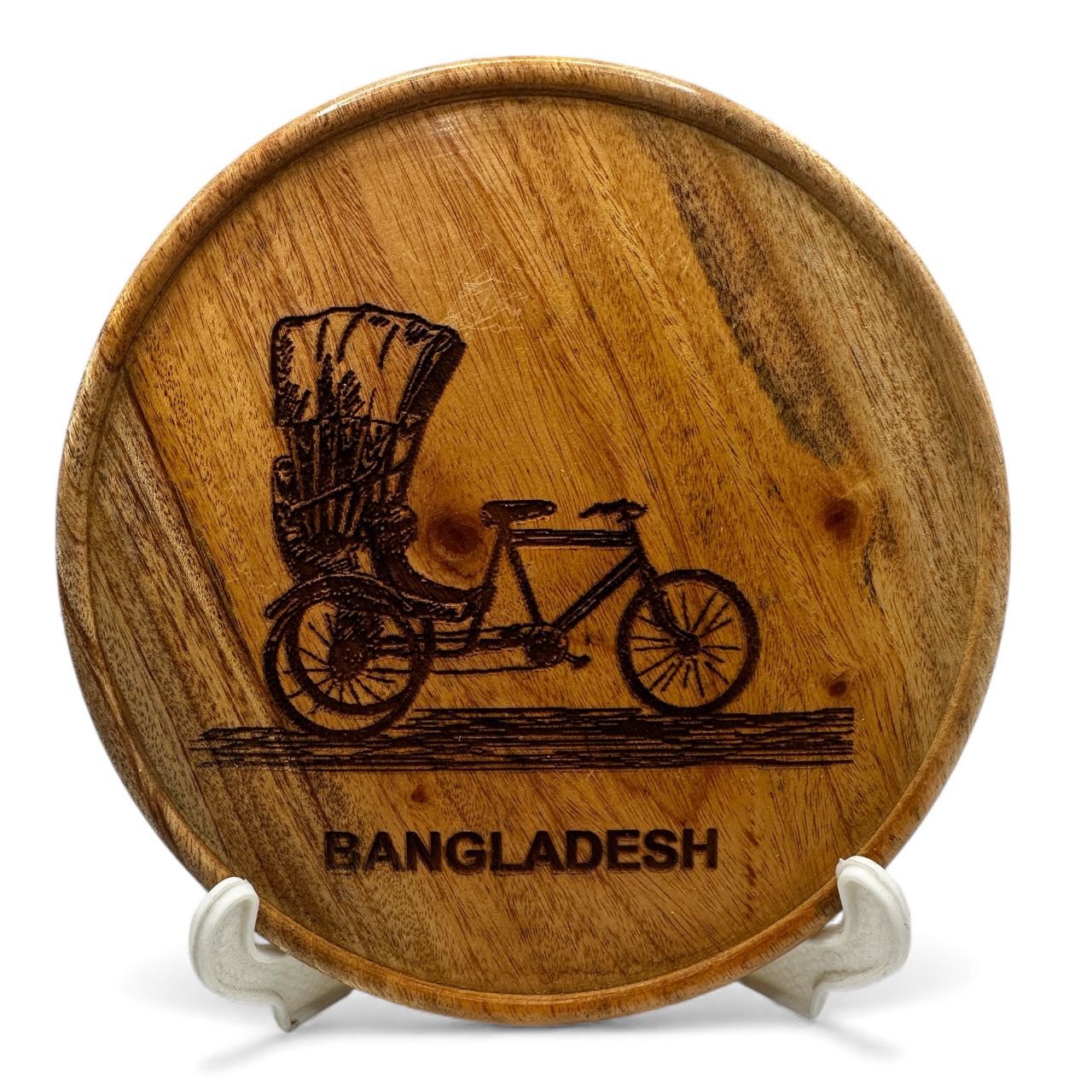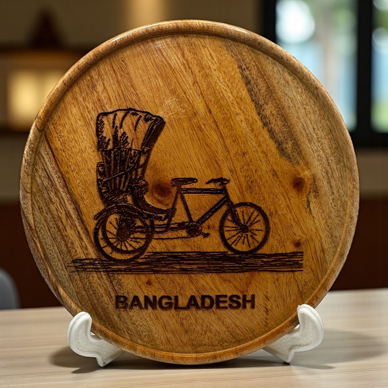 Rickshaw Wooden artwork Round monogram for table or desk with stand