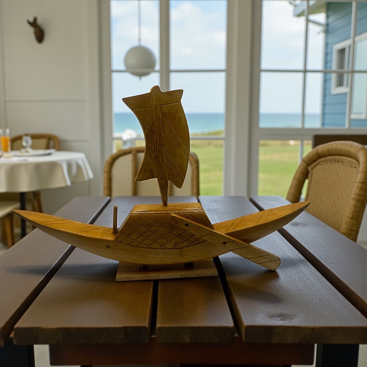Bring a touch of nautical charm to your décor with this handcrafted wooden boat. Measuring 16×9 inches, it features fine craftsmanship and a rustic finish, perfect as a decorative piece for your home, office, or collection.